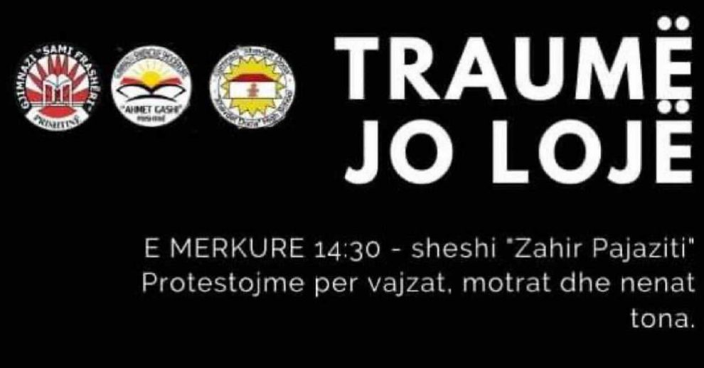 Pas lajmit të djeshëm, që tronditi të gjithë prej nesh, për rastin e ngacmimit seksual të një të miture, nga dy të mitur të tjerë, të gjithë nxënës të shkollës “Faik Konica”, si nxënës të tri Gjimnazeve kryesore të qytetit, “Sami Frashëri”, “Xhevdet Doda, dhe “Ahmet Gashi”, kemi vendosur që te mërkurën të organizojmë marshin protestues “TRAUMË, JO LOJË”, me pikëtakim tek sheshi “Zahir Pajaziti – Grandi, dhe marshim deri tek sheshi i Përmendores, tek ndërtesa e Komunës se Prishtinës.