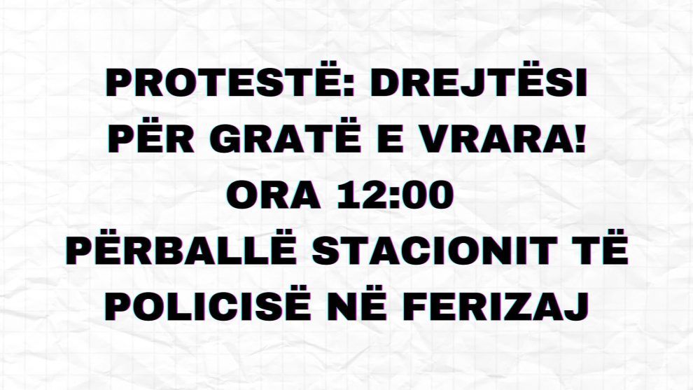Kuvendi i të Rinjve të Ferizajt, Qendra për Art dhe Komunitet-Artpolis, Qendra Kosovare për Studime Gjinore (QKSGj), dhe Rrjeti i Grave të Kosovës (RrGK) nesër, e martë, organizojnë protestë pranë Stacionit Policor në Ferizaj, Gjykatës dhe Prokurorisë, si revoltë ndaj dhunës dhe femicidit në Kosovë dhe dështimit institucional në parandalimin e vrasjes së 18-vjeçares në Ferizaj.