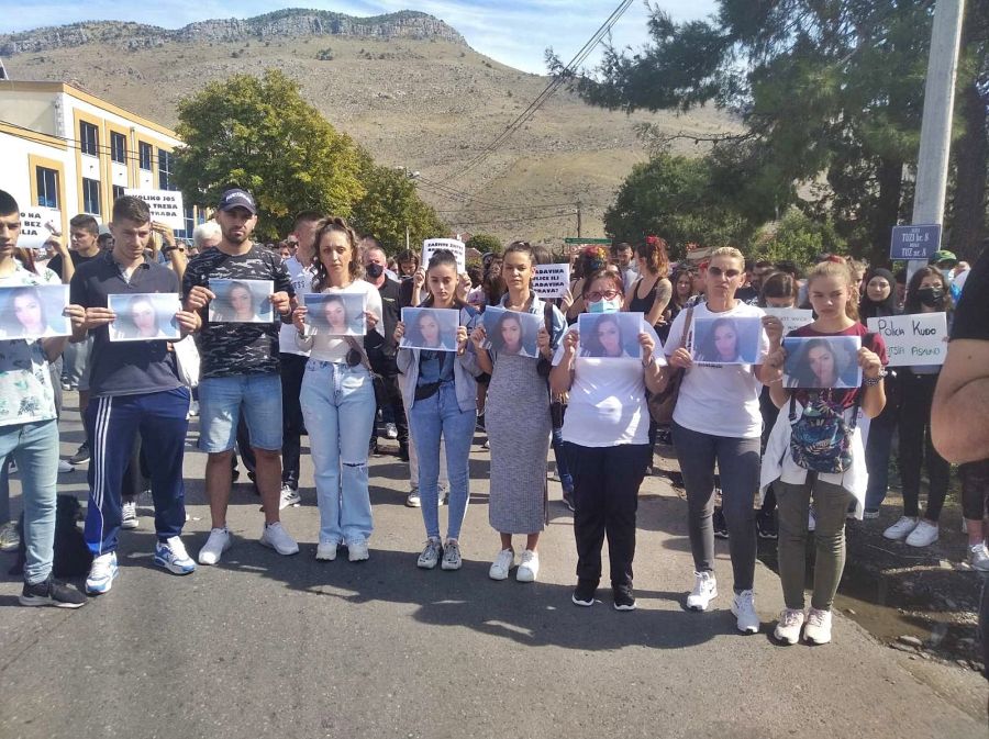 Dhjetëra qytetarë të mbledhur mbanin pankarta në gjuhën malazeze dhe shqipe, duke kërkuar drejtësi në rastin e vajzës së vrarë.